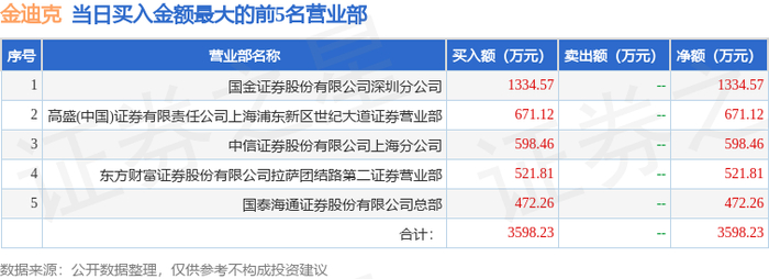 12月3日金迪克(688670)龙虎榜数据
