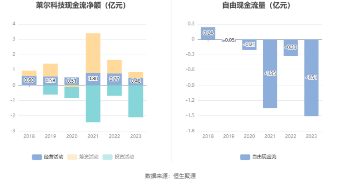 进一步统计发现,2023年公司自由现金流为-1.51亿元,上年同期为-0.33亿元。