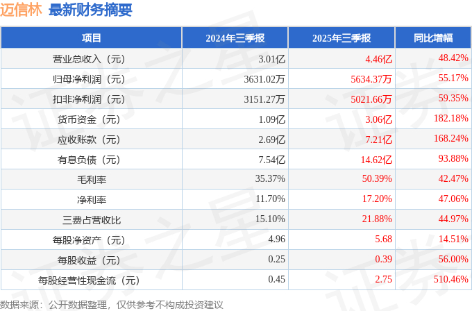 迈信林(688685)2025年三季报简析:营收净利润同比双双增长,三费占比上升明显