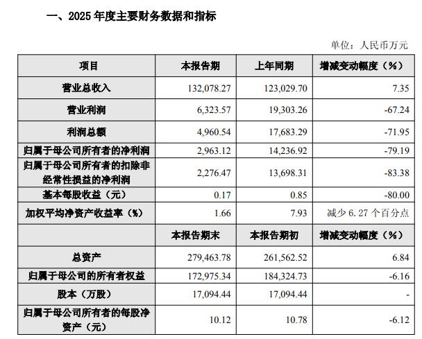 凯因科技2025年度业绩快报公告显示,报告期内,公司实现营业总收入132,078.27万元,同比增长7.35%;实现归属于母公司所有者的净利润2,963.12万元,同比下降79.19%;归属于母公司所有者的扣除非经常性损益的净利润2,276.47万元,同比下降83.38%。