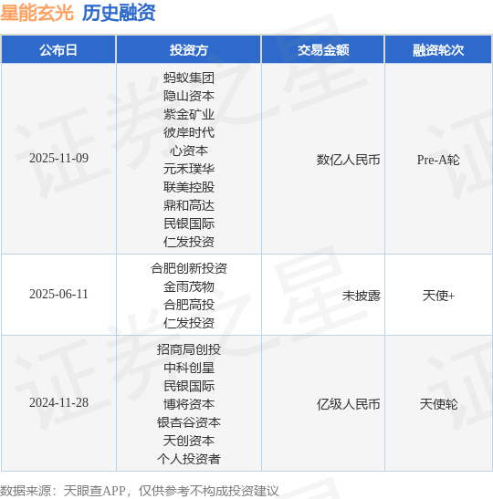 【投融资动态】星能玄光Pre-A轮融资,融资额数亿人民币,投资方为蚂蚁集团、隐山资本等