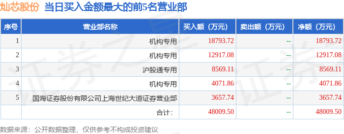 10月9日灿芯股份(688691)龙虎榜数据:机构净买入3.58亿元,北向资金净卖出3424.45万元