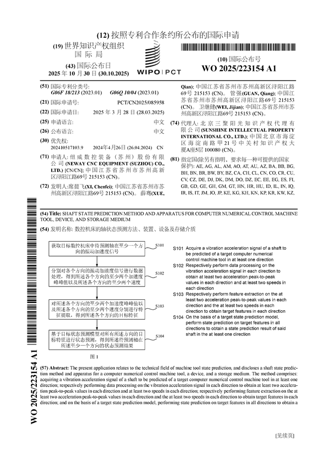 纽威数控公布国际专利申请:“数控机床的轴状态预测方法、装置、设备及存储介质”