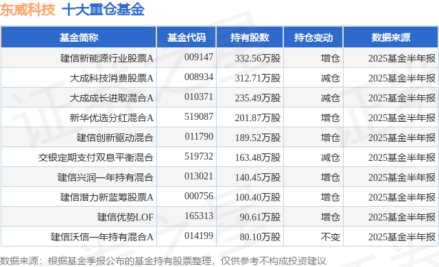 重仓东威科技的前十大公募基金请见下表: