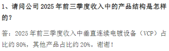 东威科技的拳头产品——垂直连续电镀设备(VCP),正是PCB生产中的必要一环。根据公司披露,2025年前三季度,VCP设备收入占比依然高达80%。这次复苏,不仅是因为订单多了,更是因为单价贵了。
