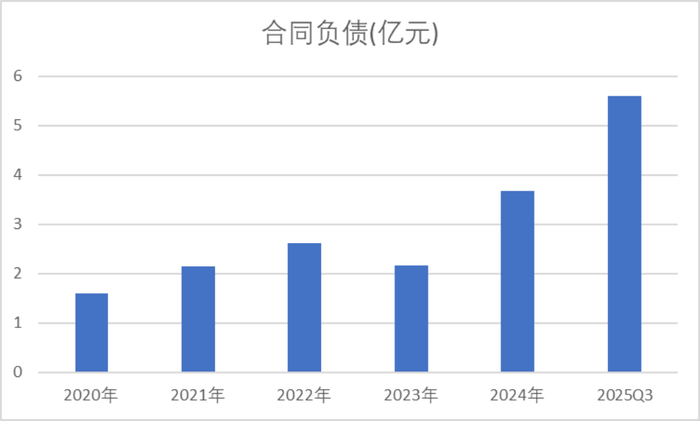 作为收入的先行指标,截至2025年9月末,公司合同负债5.6亿元,创下历史新高,相较2024年末高增52%,这意味着公司签单量保持了良好的增长势头。