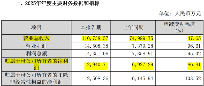 但就在刚刚过去的2025年,它却交出了一份相当亮眼的业绩快报:全年营收11.07亿,同比高增47.65%;归母净利润1.29亿元,同比增幅更是高达86.81%。