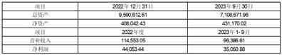 注:2023年1-9月、2023年9月30日数据未经审计。