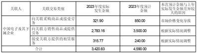 注2:公司于2024年4月15日发布《关于与中国电子财务有限责任公司签署〈2024年至2027年全面金融合作协议〉暨关联交易的公告》(公告编号:2024-014),经第一届董事会第十二次会议、第一届监事会第六次会议等审议通过,公司拟与中国电子财务有限责任公司签订《2024年至2027年全面金融合作协议》,尚需提交公司股东大会审议。该协议约定了与中国电子财务有限责任公司的交易额度,其中资金结算余额和综合授信额度上限均为人民币10亿元。2024年,公司与中国电子财务有限责任公司的交易预计余额以协议约定的交易最高限额进行预计并执行。