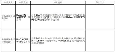 公司产品覆盖了主流串行通讯协议以及并行通讯电平转换类接口,广泛应用于系统间信号传输等领域。目前,公司的主要产品具体情况如下: