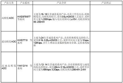 公司目前主要产品为采样精度在16位及以上的高精度ADC以及12位-14位的高速高精度ADC,具体情况如下: