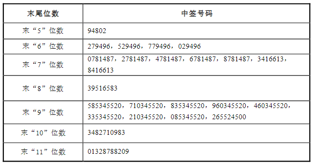 7月26日公告,凡参与宏微转债网上申购的投资者持有的申购配号尾数与上述号码相同的,则为中签号码。中签号码共147456个,每个中签号码只能认购1手(1000元)宏微转债。