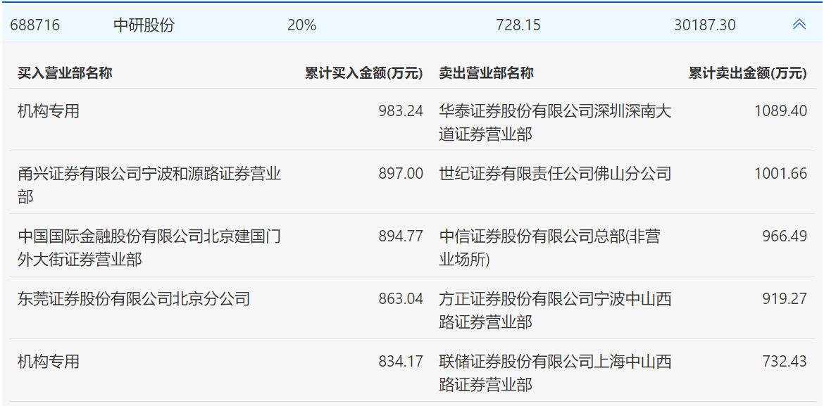中研股份12月19日涨停,龙虎榜数据显示,上榜营业部席位全天成交9181.47万元,占当日总成交金额比例为30.42%。其中,买入金额为4472.22万元,卖出金额为4709.25万元,合计净卖出237.03万元。