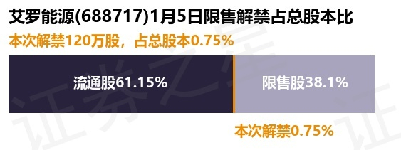 艾罗能源(688717)120万股限售股将于1月5日解禁,占总股本0.75%
