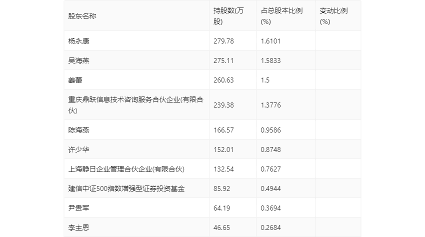年报显示,2023年年末公司十大流通股东中,新进股东为李主恩,取代了三季度末的UBS AG。在具体持股比例上,吴海燕、尹贵军持股有所上升。
