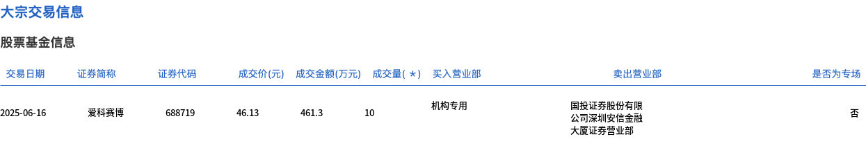 爱科赛博今日大宗交易折价成交10万股,成交额461.3万元