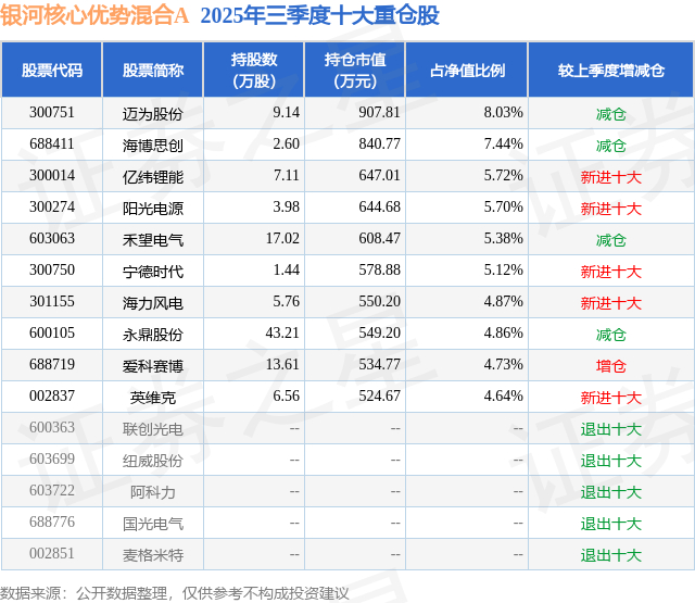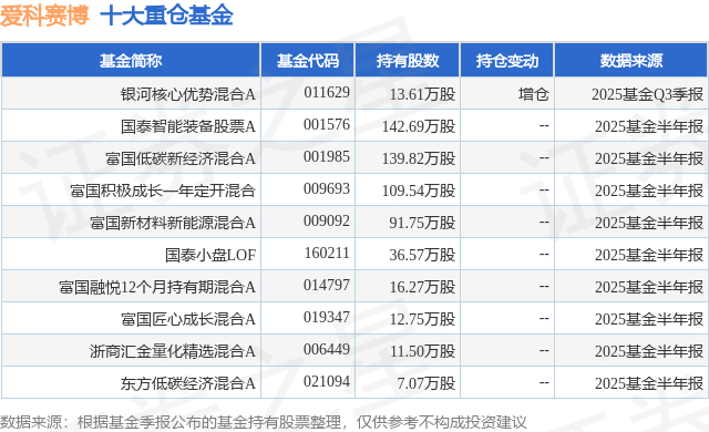 根据2025基金Q3季报公募基金重仓股数据,重仓该股的公募基金共1家,其中持有数量最多的公募基金为银河基金的银河核心优势混合A。银河核心优势混合A目前规模为1.11亿元,最新净值0.7827(10月24日),较上一交易日上涨3.01%,近一年上涨10.69%。该公募基金现任基金经理为李一帆。