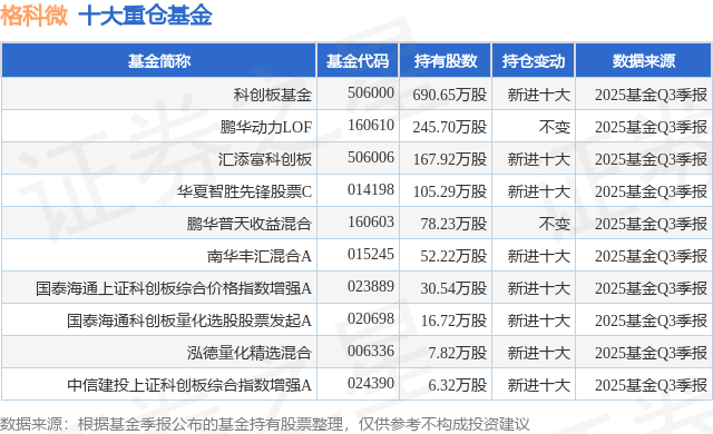 重仓格科微的前十大公募基金请见下表: