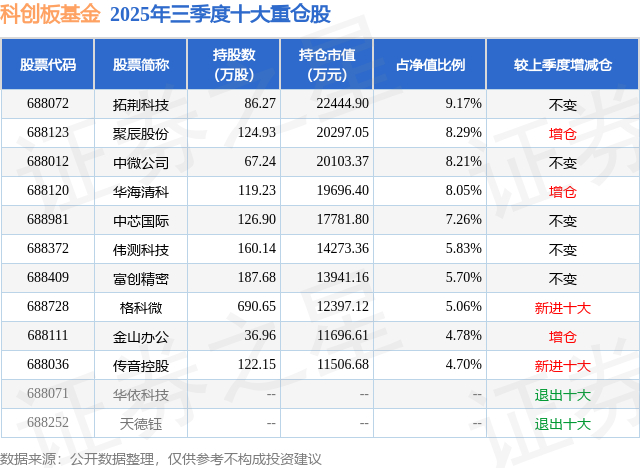 科创板基金的前十大重仓股如下: