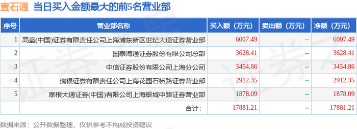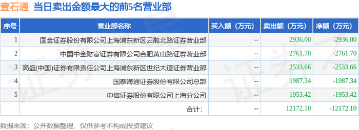 11月4日壹石通(688733)龙虎榜数据
