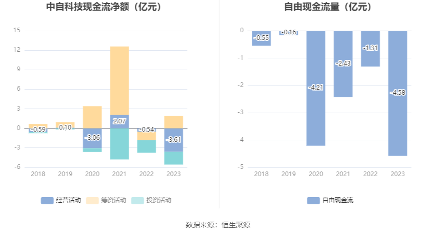 进一步统计发现,2023年公司自由现金流为-4.58亿元,上年同期为-1.31亿元。