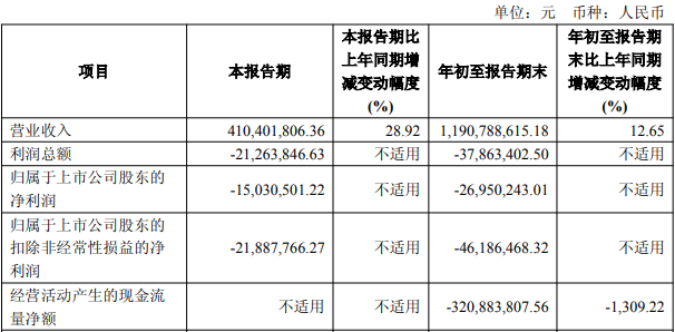 中国经济网北京11月5日讯 中自科技(688737.SH)近日发布2025年第三季度报告。今年前三季度,公司实现营业收入11.91亿元,同比增长12.65%;归属于上市公司股东的净利润-2695.02万元;归属于上市公司股东的扣除非经常性损益的净利润-4618.65万元;经营活动产生的现金流量净额-3.21亿元,同比减少1,309.22%。