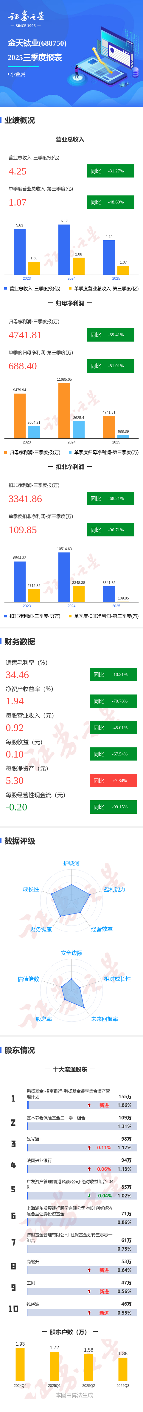 图解金天钛业三季报:第三季度单季净利润同比下降81.01%