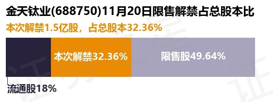 金天钛业(688750)1.5亿股限售股将于11月20日解禁,占总股本32.36%