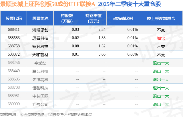 景顺长城上证科创板50成份ETF联接A的前十大重仓股如下: