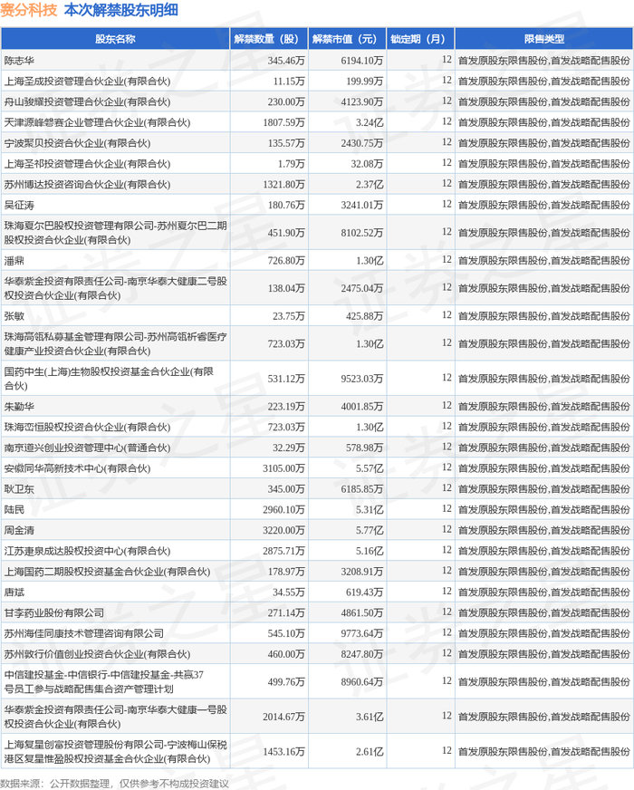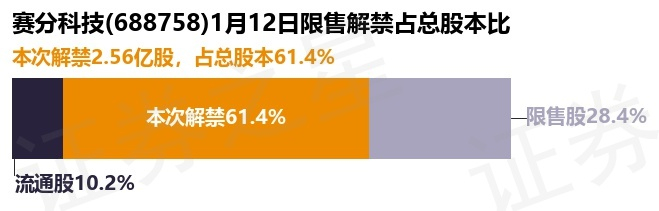 赛分科技(688758)2.56亿股限售股将于1月12日解禁,占总股本61.4%