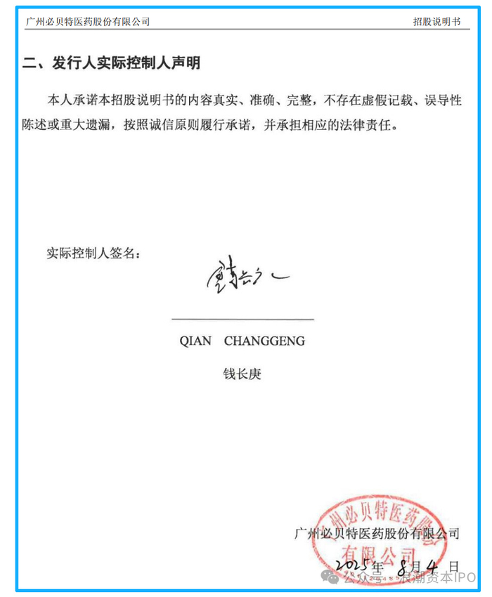 在2023年6月及2025年8月披露的招股书注册稿中,实际控制人钱长庚的《声明》签字页出现“时空穿越”,签字位置、盖章完全一致,两版招股书签署日期分别为2023年6月与2025年8月,但钱长庚的亲笔签名、公章位置完全复刻,涉嫌伪造文件。