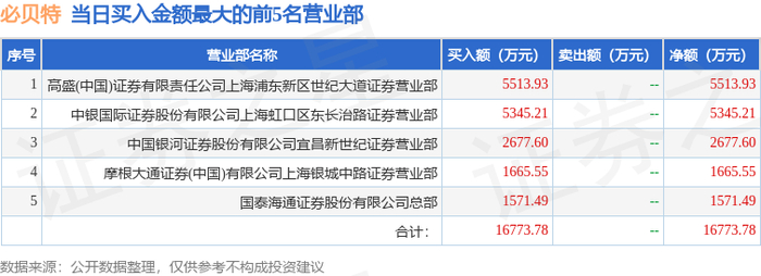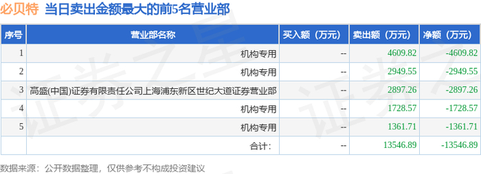 1月8日必贝特(688759)龙虎榜数据:机构净卖出1.06亿元