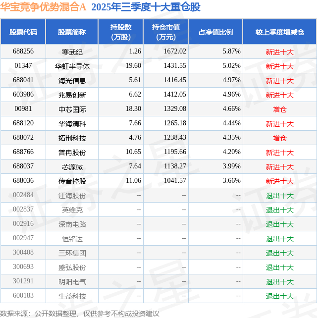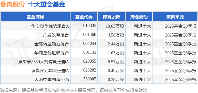根据2025基金Q3季报公募基金重仓股数据,重仓该股的公募基金共7家,其中持有数量最多的公募基金为华宝基金的华宝竞争优势混合A。华宝竞争优势混合A目前规模为2.69亿元,最新净值0.9779(1月6日),较上一交易日上涨2.29%,近一年上涨77.06%。该公募基金现任基金经理为石坚。