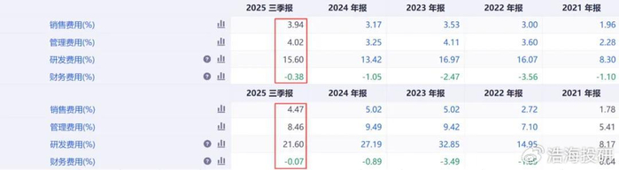 这背后的账很好算,恒烁营收规模不足普冉的四分之一,却要维持一支庞大的研发团队去攻克前沿技术,研发费用率高达21.60%,合计期间费用率34.46%,直接吞噬了本就微薄的毛利;普冉的研发费用率虽然也有15.60%,但得益于庞大的营收基数,期间费用率控制在23.18%,远低于恒烁。这就好比两个跑步的人,普冉是轻装上阵,恒烁却是背着巨石狂奔。