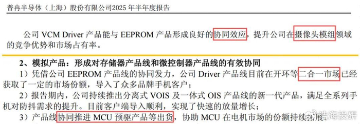 普冉手里攥着存储+模拟的组合拳,存储芯片占了营收78.59%,但这其中藏着高毛利的EEPROM(带电可擦除可编程只读存储器)和VCM Driver(音圈马达驱动芯片),两者的协同效应让它在手机摄像头领域混得风生水起。历史数据显示其EEPROM曾占存储业务近三成,直接把整体毛利率撑在了29.96%的高位。更有趣的是,普冉的MCU(微控制器)业务虽然占比不高,但其与存储产品的客户重叠度极高,这种内部生态的化学反应是外界难以复制的。