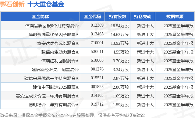 根据2025基金半年报公募基金重仓股数据,重仓该股的公募基金共16家,其中持有数量最多的公募基金为信达澳亚基金的信澳品质回报6个月持有混合。信澳品质回报6个月持有混合目前规模为7.48亿元,最新净值0.6583(9月17日),较上一交易日上涨1.9%,近一年上涨34.95%。该公募基金现任基金经理为邹运。邹运在任的基金产品包括:信澳红利回报混合A,管理时间为2019年5月20日至今,期间收益率为39.71%;信澳至诚精选混合A,管理时间为2021年3月2日至今,期间收益率为-51.95%;