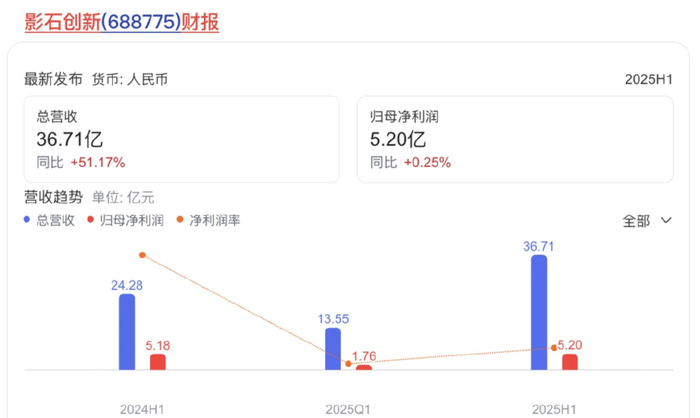 反观,最近和大疆竞争激烈,曾经颠覆海外品牌在全景摄像领域垄断的影石创新(Insta360),似乎陷入了创新疲惫期。2025年上半年,营收36.71亿元,同比增长51.17%;利润总额5.4亿元,同比下降6.46%;归母净利润5.20亿元,同比增长0.25%。在全景相机成为绝对王者后,影石创新的第二曲线迟迟未能出现。