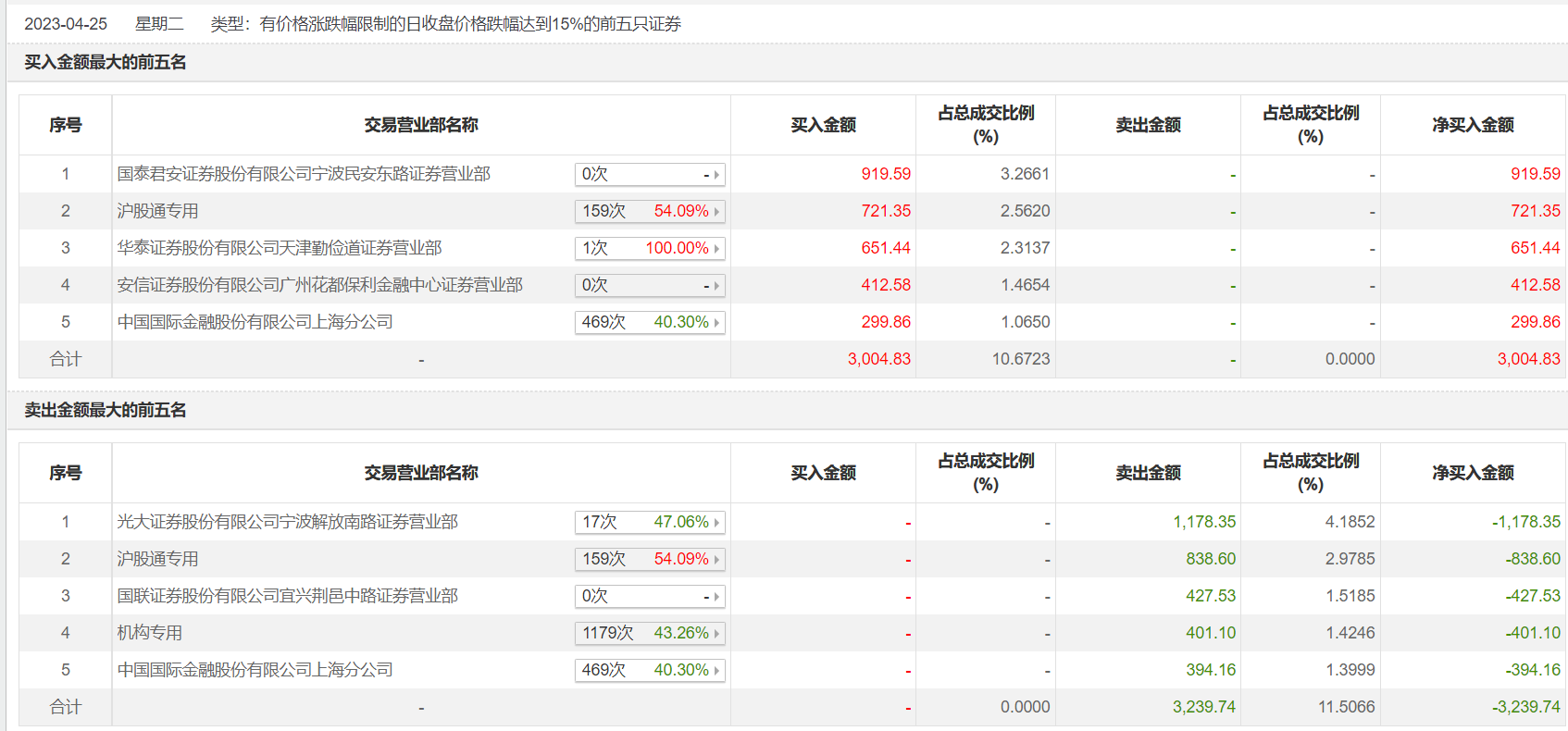 具体来看,机构合计净卖出401.1万元。此外,光大证券宁波解放南路证券营业部、沪股通专用分别卖出1178.35万元、838.60万元;国泰君安证券宁波民安东路证券营业部、沪股通专用分别买入919.59万元、721.35万元。