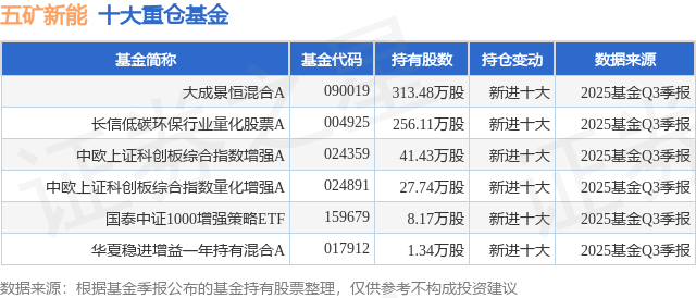 重仓五矿新能的公募基金请见下表: