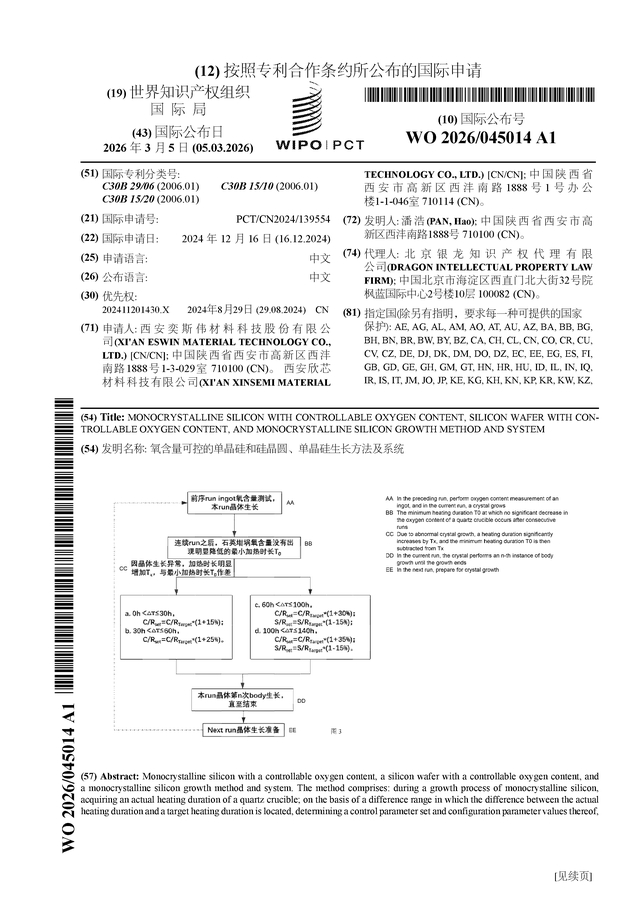 西安奕材公布国际专利申请:“氧含量可控的单晶硅和硅晶圆、单晶硅生长方法及系统”