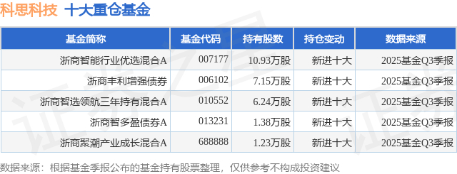 重仓科思科技的公募基金请见下表: