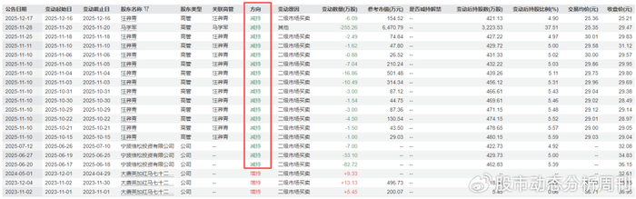 3、2025年10月15日~2025年12月16日期间,另一创始人汪荞青以25.18~30.15元/股的价格区间,共减持600,174股,减持比例0.6983%,持股比例由减持前的0.5984%降至4.90%。虽然其原计划是减持不超过1%,实际减持未达计划就提前终止,但显然,持股比例还是降低至了5%以下。