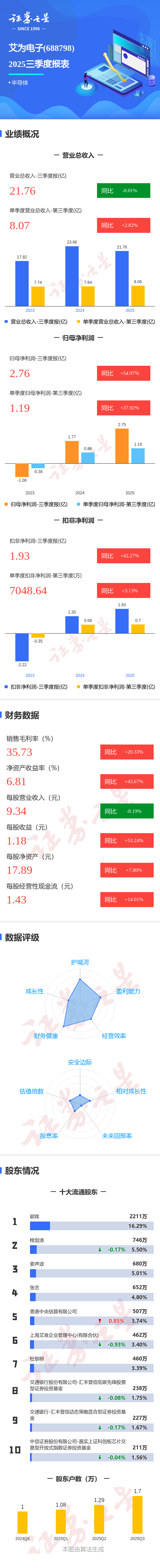 图解艾为电子三季报:第三季度单季净利润同比增长37.93%