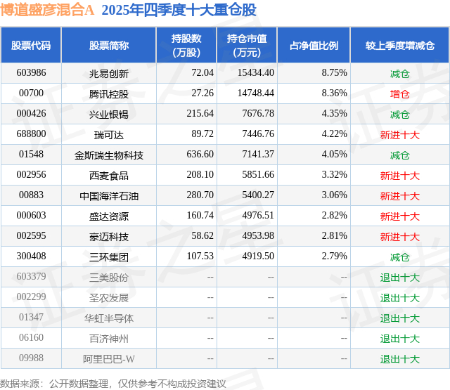 博道盛彦混合A的前十大重仓股如下: