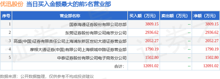 证券之星消息,沪深交易所2025年12月26日公布的交易公开信息显示,优迅股份(688807)因有价格涨跌幅限制的日换手率达到30%的前五只证券登上龙虎榜。此次是近5个交易日内第1次上榜。
