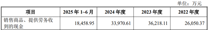 上述同期,公司销售商品、提供劳务收到的现金分别为26,050.37万元、36,218.11万元、33,970.61万元和18,458.95万元;经营活动产生的现金流量净额分别为2,562.16万元、4,542.36万元、2,594.73万元和1,014.69万元;