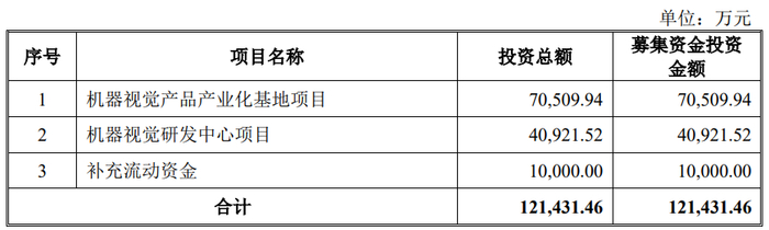 易思维本次募集资金总额为139,875.00万元,扣除发行费用后实际募集资金净额为128,208.29万元,比原计划多6,776.83万元。易思维2026年2月6日披露的招股书显示,公司拟募集资金121,431.46万元,用于机器视觉产品产业化基地项目、机器视觉研发中心项目、补充流动资金。