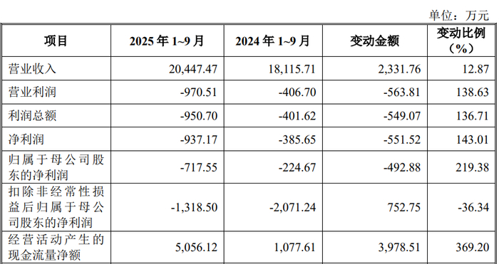 2025年1-9月,易思维的营业收入为20,447.47万元,变动比例为12.87%;净利润为-937.17万元,变动比例为143.01%;归属于母公司股东的净利润为-717.55万元,变动比例为219.38%;扣除非经常性损益后归属于母公司股东的净利润为-1,318.50万元,变动比例为-36.34%;经营活动产生的现金流量净额为5,056.12万元,变动比例为369.20%。