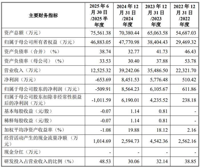 2022年至2025年1-6月,易思维的营业收入分别为22,321.70万元、35,486.50万元、39,242.06万元和12,525.32万元;净利润分别为510.42万元、5,776.48万元、8,451.53万元和-653.69万元;归属于母公司股东的净利润分别为611.86万元、6,105.67万元、8,564.23万元和-509.91万元;归属于母公司股东的扣非净利润分别为238.18万元、4,235.52万元、6,190.01万元和-1,011.59万元。