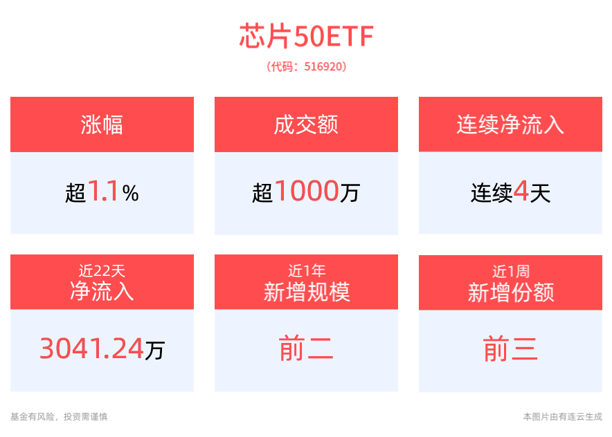 风险提示:基金有风险,投资需谨慎。投资人应当阅读《基金合同》《招募说明书》《产品资料概要》等法律文件,了解基金的风险收益特征,特别是特有风险,并根据自身投资目的、投资经验、资产状况等判断是否和自身风险承受能力相适应。芯片50ETF(516920)属于中等风险等级(R3)产品,适合经客户风险等级测评后结果为平衡型(C3)及以上的投资者。文中提及个股仅为指数成份股客观展示列举,本文出现信息只作为参考,投资人须对任何自主决定的投资行为负责。本文中的任何观点、分析及预测不构成对阅读者任何形式的投资建议。标的指数并不能完全代表整个股票市场。